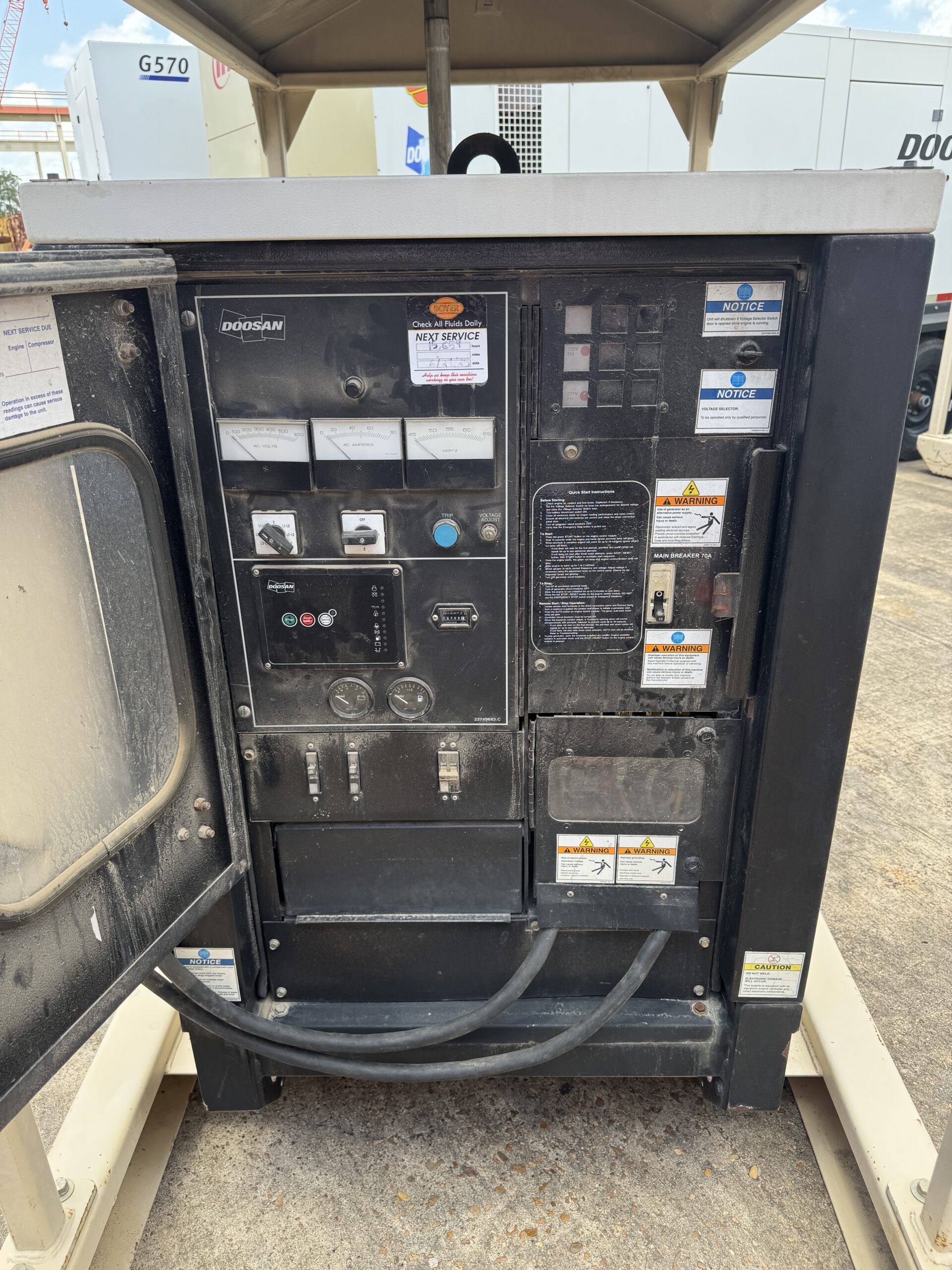 The Doosan G25 is renowned for its durability and ease of maintenance in the field. This skid-mounted unit is specifically configured for stationary placement, providing a stable and continuous power supply for operations that do not require a mobile trailer setup.